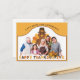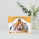 Celebra el día de acción de gracias con esta cálida imagen de familia y amigos con un fondo con un pavo feliz usando un sombrero de peregrino y deseando un feliz día de acción de gracias ! . Puedes personalizar el mensaje superior y tener el recuerdo más único y hermoso para expresar tu gratitud o enviar un maravilloso agradecimiento por el día de acción de gracias, independientemente de si el destinatario asistió a la fiesta o no.
