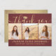 Envíe una elegante nota de gratitud con las postales de agradecimiento al personalizado 3 collage de fotos de borgoña y la graduación de oro. Todas las imágenes y la redacción son simples de personalizar. (IMAGEN PLACEMENT TIP: Una manera fácil de centrar una foto exactamente como quieres es recortarla antes de subirla al sitio web de Zazzle.) Esta plantilla se puede personalizar con cualquier texto de su elección, como futuros planes de educación, nueva posición de trabajo o presupuesto inspirador favorito. Si prefiere escribir su mensaje a mano, simplemente elimine el texto del ejemplo o utilice el espacio adicional encima de la nueva dirección y la información de contacto. El diseño presenta un fondo rojo oscuro marrón, una tapa falsa de la placa de mortero de Relieve metalizado, caligrafía de escritura a mano, tipografía minimalista moderna y tres fotos de su elección, como imágenes de la ceremonia de graduación o de la ceremonia de graduación. Tenga en cuenta que el oro es color impreso, no Relieve metalizado metálico. Estas elegantes tarjetas personalizadas son una manera moderna y moda de agradecer a la familia y amigos por compartir su celebración de graduación. ¡Felicitaciones al graduado!