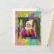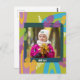 Tarjeta postal moderna personalizada, linda y colorida verde y rosa con foto para papas fritas, niña, invitación de cumpleaños. Personaliza tarjeta floral verde con foto y texto. Envíala para cumpleaños, invitación o utilízala para fotografía escolar.