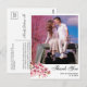 Inspirado en la delicada belleza de las flores de cerezo, este diseño de tarjeta postal sirve como un recuerdo atemporal de agradecimiento para los invitados a su boda. La rama de cerezo rosa en acuarela añade un toque de encanto natural y romance, lo que la hace perfecta para parejas que buscan expresar su gratitud con una mezcla de sofisticación y belleza natural.