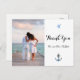 Hermosa y moderna boda azul océano en la playa Gracias postear tarjetas que puedes personalizar, para crear una impresión duradera en amigos y familia por tu memorable día. Reemplace la foto de ejemplo con la suya propia. El texto se puede cambiar mediante el menú de edición. Ideal para todo tipo de bodas en la playa moderna y boda.