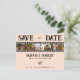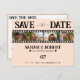Tarjeta postal de boda retro save the date con collage de fotos de tira de película. Fondo rosa claro / melocotón con anillos de boda. Personalice con los detalles de su boda y fotografías de la pareja recién casada.