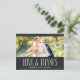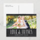 Esta foto rústica gracias postal muestra el texto "Amor y gracias" en un tipo de letra manuscrita contra el fondo de un pizarrón. Personaliza con una de tus fotos bodas favoritas.