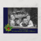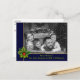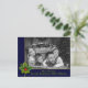 Personalice la parte delantera y trasera de esta divertida postal de Navidades de fotos. Tu foto familiar llenando la cara de la tarjeta detrás de un marco azul y dorado resaltado con un pino y una toga hueca. La banda inferior sostiene los nombres y los Navidades saludando con una letra verde suave. Puede personalizar el saludo de vacaciones al revés, su dirección de retorno y sus nombres en script cerca de la parte inferior con espacio para que añada una nota personal manuscrita.