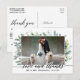 Tarjeta postal de agradecimiento de boda de novio y novia con marco de pino verde acuarela caligrafía elegante moderna