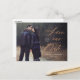 Esta romántica tarjeta postal de fecha guarda una foto completa y un guión elegante. En la parte delantera de la tarjeta, la caligrafía de bronce de cobre dice "Salven nuestra fecha" y sobrepone una foto de sangría completa, orientada al paisaje. Los nombres de la pareja, la fecha del boda y la ubicación del boda están escritos en blanco en la parte delantera de la postal. La parte posterior de la fecha de guardado incluye espacio para añadir detalles adicionales del boda (como el sitio web del boda).