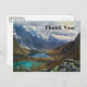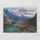 Gracias postal con una hermosa fotografía de la naturaleza. Con montañas alpinas cubiertas de nieve y tranquilos estanques escondidos en el valle de estas majestuosas montañas.