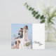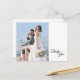 Esta simple foto de marco de caligrafía en blanco y negro gracias a la postal aporta un elegante toque de lujo pero moderno a un boda minimalista y más tradicional o formal. La caligrafía casual permite un ambiente antiguo, mientras que el elegante diseño neutro se puede combinar con cualquier aspecto único de la celebración de tu matrimonio. Escriba una nota personalizada en la parte posterior o déjela en blanco para escribir a mano su apreciación.