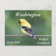 Hermosa finca dorada estadounidense conocida como Willow, se colgó en una línea con un texto que dice "ave del estado de Washington, Willow goldfinch" . No dude en cambiar o eliminar texto si lo desea.