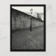 Fotografía en blanco y negro con una farola en una calle empedrada en pendiente en París.