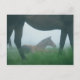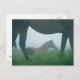 Una yegua apesta casi su potro en reposo, perfectamente enmarcado por sus piernas.