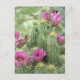 Cercano a las flores de cactus rosados florecientes. Los pétalos suaves resuenan contra las espinas espinosas de cactus como en una pequeña alternancia de notas musicales adyacentes. Fotografía en color de cactus tomada en el desierto de Sonoran en Scottsdale, Arizona. Personalice las postales del desierto de Arizona con su propio texto e imágenes usando la opción "Personalizar".