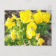 Postal fotográfica con flores de color amarillo pansy