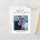 La postal de fotos de agradecimiento al Boda es una manera sincera y conveniente de compartir su aprecio con sus seres queridos. Con una foto de tamaño completo de los recién casados en la parte delantera, esta tarjeta postal captura un momento boda memorable mientras que la parte trasera proporciona espacio para un mensaje personal de agradecimiento. Con su diseño fácil de enviar por correo, esta postal es perfecta para expresar gratitud con estilo y para compartir una memoria boda con amigos y familiares.