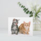 Esta postal muestra una foto de dos gatitos adorables, un naranja y el otro gris.