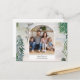 Tarjeta fotográfica de vacaciones pintada a mano con un saludo personalizado a lo largo de un ilustracion forestal de invierno.