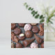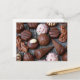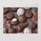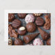 Esta postal contiene una foto de una colección de trufas de chocolate.