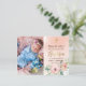 Diseño de tarjeta postal de agradecimiento por bautizo. Diseño elegante con fondo de acuarela en rosa y durazno, marco oval geométrico dorado y arreglo floral en la parte delantera con cruz dorada y la palabra Bautizo en letras doradas. Agrega más detalles en la parte posterior de la tarjeta. Para editar esta plantilla, haz clic en personalizar más.