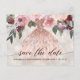 Tarjetas postales modernas de Quinceañera para guardar la fecha. Diseño con vestido de oro rosa, elementos florales sobre un fondo perla brillante. Personalice con su foto y detalles en el reverso.