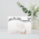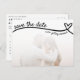 Una boda blanca y pura y oscura salva la tarjeta postal con foto, línea de corazón y calendario. Personalízalo con una foto y los detalles de tu evento. Utilice el editor para mover el corazón a su fecha de boda.