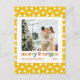 Esta tarjeta de vacaciones para Navidades presenta un texto de tipografía de color retro "alegre y brillante", los nombres de la familia, año y foto en un fondo geométrico.