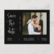 Esto ahorra la tarjeta postal de invitación a la invitación de compromiso de fecha, incluye una caligrafía elegante y un tipo de letra simple sans serif en un fondo negro con una foto y código QR para un limpio aspecto minimalista y moderno, lo que es una hermosa manera de informar sobre tu próximo boda. La sencillez de este diseño añade un toque de elegancia a su boda, ahorrando las tarjetas de invitación de fecha. Funciona bien con muchos temas bodas y sin duda una gran adición a su boda. Simplemente personalizar los nombres y frases en unos pocos pasos fáciles y personaliza la postal de invitación con tu foto de la pareja feliz y reemplaza el código QR con el tuyo en la espalda para darle a tu postal un agradable toque personal. Nota: La elegante caligrafía de las frases "Save the Date" (Salven la fecha) y "Toda historia de amor es hermosa, pero la nuestra es nuestra favorita", así como las líneas y otras obras de arte y elementos gráficos no pueden editarse, eliminarse ni moverse. Están arreglados.