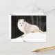 Tarjeta original que muestra un zorro ártico lindo en la nieve. El zorro ártico (Vulpes lagopus), también conocido como zorro blanco, zorro polar o zorro de nieve, es un pequeño zorro nativo de las regiones árticas del hemisferio norte y común en todo el bioma tundra ártico[1][3]. Está bien adaptado para vivir en entornos fríos. Tiene una piel gruesa y profunda que es marrón en verano y blanca en invierno. Su longitud corporal varía de 46 a 68 cm (18 a 27 pulgadas), con una forma general redondeada para minimizar el escape del calor corporal. El zorro ártico se alimenta de criaturas pequeñas que puede encontrar, como lemmings, voles, crías de foca anillada, peces, aves acuáticas y aves marinas. También comerá carroña, bayas, algas, insectos y otros pequeños invertebrados. Los zorros del Ártico forman pares monógamos durante la temporada de cría y se mantendrán juntos para criar a sus jóvenes en complejos jardines subterráneos. Ocasionalmente, otros miembros de la familia pueden ayudar a criar a sus hijos.