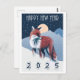 Bastante ilustracion de un zorro rojo en la nieve invernal. Feliz diseño de Año Nuevo para 2025.