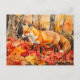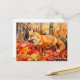 Postal Fox en la pintura de acuarela del bosque de otoño