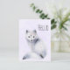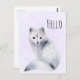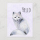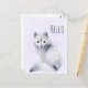 Una postal con una imagen acuarela de un zorro blanco con lujosos diseños de flora azul por toda su piel.