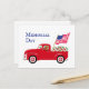 Tarjeta postal del Día de los Caídos para fanáticos de Labrador. Diseño de cartoon de Fox Red Labrador y Camioneta Roja para el Día de los Caídos. Creado por Naomi Ochiai.