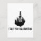 imagen de una plataforma de gas natural en forma de mano que aleja el dedo "volteando". El texto dice "frac you haliburton