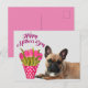 Französische Bulldoggen wünschen mit Blumen , Herzen und Ballons alles Gute zum Muttertag.