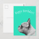Postal Frenchie | Cumpleaños color Aqua Feliz