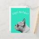 NewparkLane - Tarjeta postal, con un Frenchie acuarela en blanco y negro, sobre un fondo brillante color turquesa / aqua.