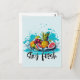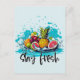 Esta postal contiene frutas tropicales acuáticas y olas de agua con las palabras "Stay Fresh", perfectas para las vibraciones de playa y las aventuras de verano.