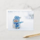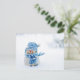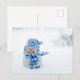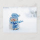 Amigo helado en postal azul