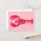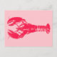 Postcard en un boceto digital de una langosta en una profunda fucsia rosa sobre un fondo rosa coral pastel