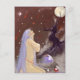 Arte original. Una dama de pelo púrpura, meteoritos cayendo del cielo, la luna parece estar sostenida por un árbol muy fuerte y una varita mágica está protegida dentro de un globo.