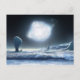 Ilustracion de un planeta de hielo alienígena con un sol azul en alza.
