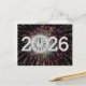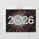 Postal Fuegos artificiales y reloj de luna de Año Nuevo 2