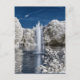Una fuente de cristal en un lago, fotografiada en infrarrojo (por lo que el follaje es blanco), luego convertida en falso color (por lo que el cielo es azul oscuro).
