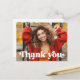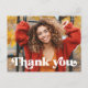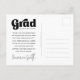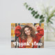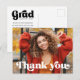 Tarjeta postal de agradecimiento con el texto "gracias" en una fuente de estilo retro como una superposición blanca sobre tu foto personalizada en la parte frontal. En la parte posterior está el texto "graduado" en una fuente de estilo retro y el año con un mensaje personalizado debajo. Puedes cambiar colores, mover y cambiar el tamaño de los elementos con la herramienta de diseño.