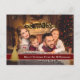 A modern photo Christmas card design with your family photo filling the card face. Metallic gold Christmas tree accent with dark red text band for your words. You can personalize the backside Christmas greeting, your return address and your names in script near the bottom with space for you to add a handwritten personal note.