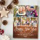 Guión moderno de caligrafía divertida postal feliz año nuevo - 4 fotos - Impresión rústica de madera