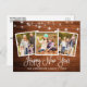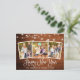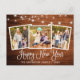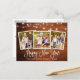 Moderna caligrafía de diversión guión 3 Familia de fotos Feliz postal de Año Nuevo con luces de cadena - Madera rústica de campo