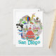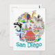 Tanto por ver y por hacer en la ciudad de la playa de San Diego. San Diego se representa a través de una caprichosa colección de monumentos y atracciones icónicas, incluyendo vida silvestre, arquitectura y parques de diversiones. Los colores brillantes y los diseños lúdicos transmiten la vibrante y diversa oferta de la ciudad.