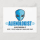 ALIENOLOGISTA. ¡Gracioso título para los que aman el espacio exterior, los ufo y los extraterrestres! Los diseños muestran una imagen de un alien azul, con los ojos estereotipados y gigantes. Gran regalo para adultos o niños, para hombres, mujeres, niños, chicas.