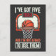 Postal Funny Basketball Player 5 Fouls no tiene miedo de