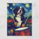 AI generó arte de un adorable tamborilero de perro de montaña de Bernese con arte Van Gogh al fondo